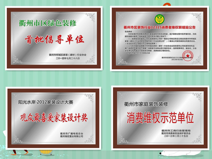 2013年被評為衢州市裝修行業12315消費者維權聯絡站;