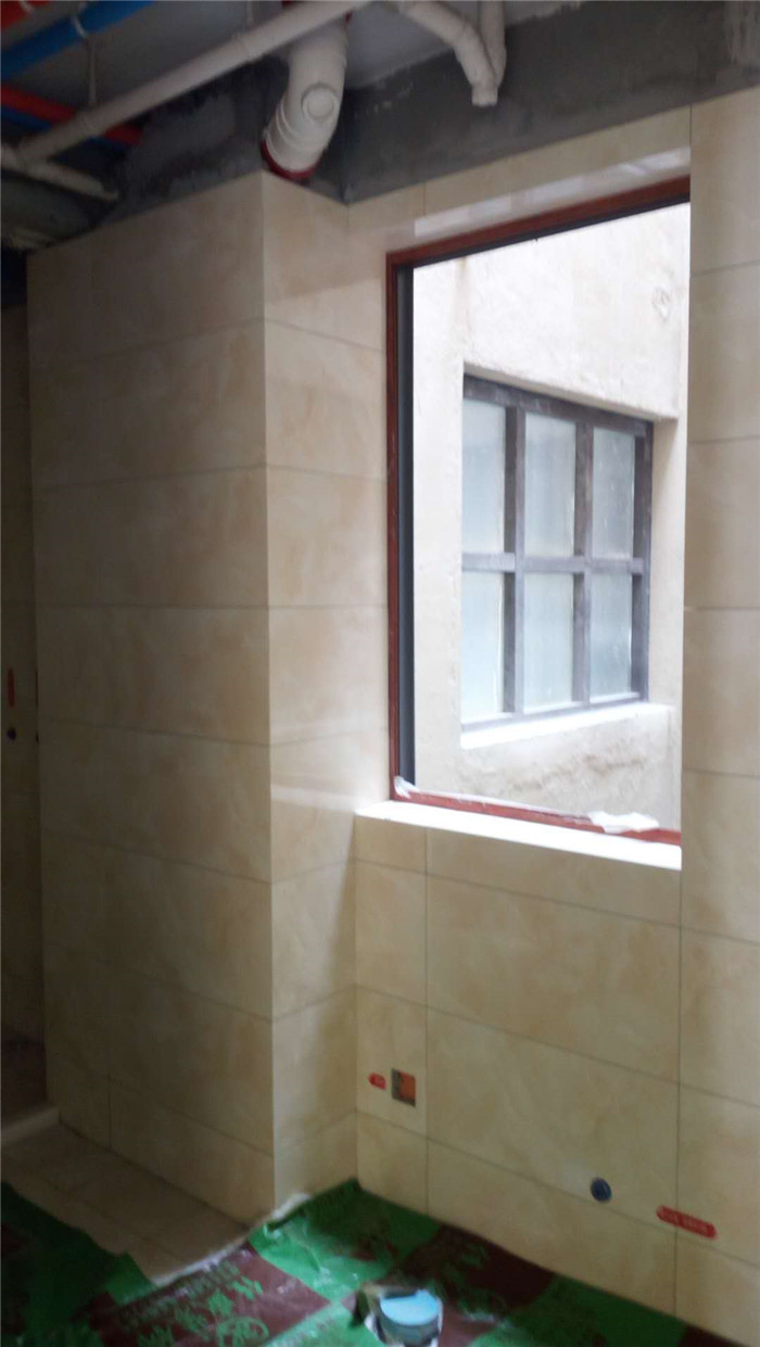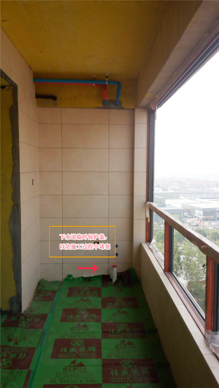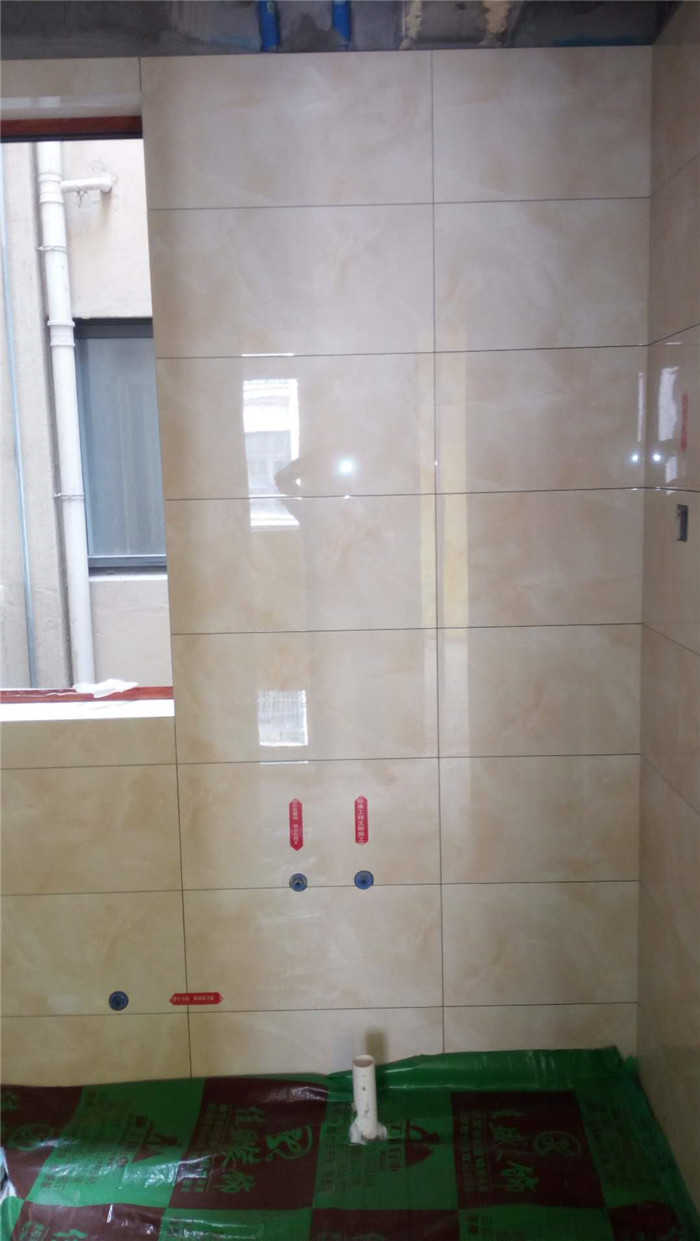 瓷磚鋪設完畢,全面覆蓋保護膜